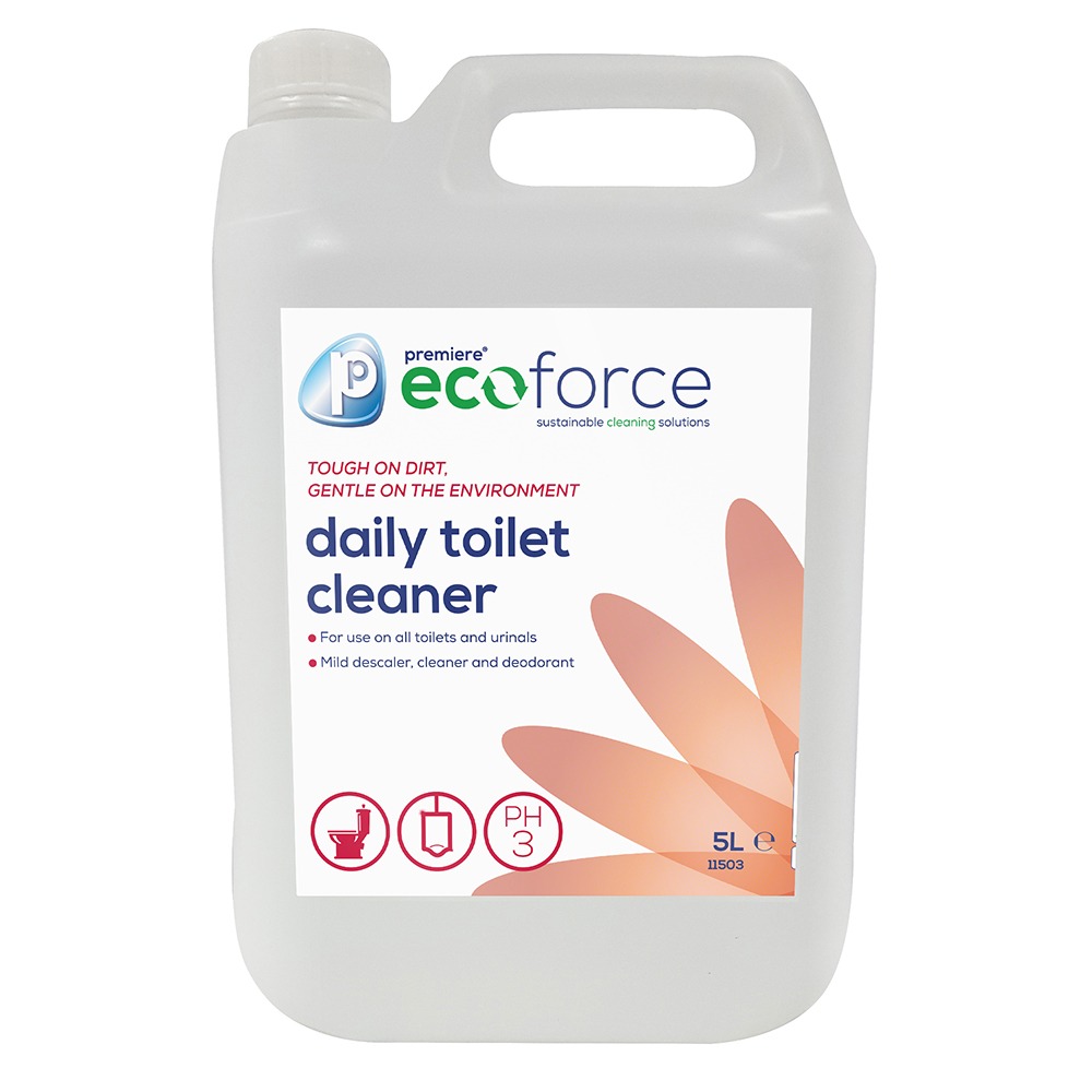 Premiere Products Ecoforce Daily Toilet Cleaner is a mild descaler, cleaner and deodorant suitable for daily use on all toilets and urinals.