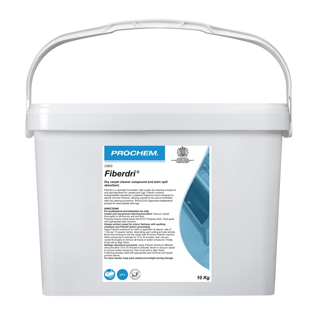 Prochem Fiberdri is a dry carpet cleaning compound based upon natural organic compound coated with biodegradable cleaning agents.