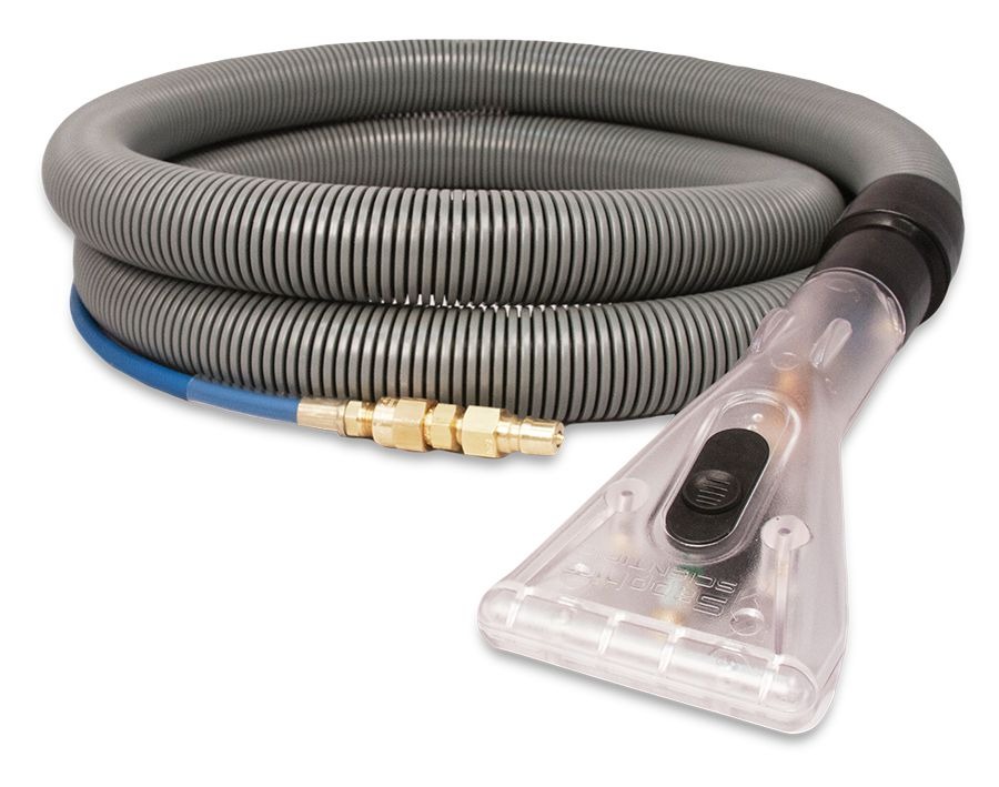 The Prochem Sapphire Upholstery Pro has a 10 cm (4″) head with a 3m (10 ft) hide-a-hose.