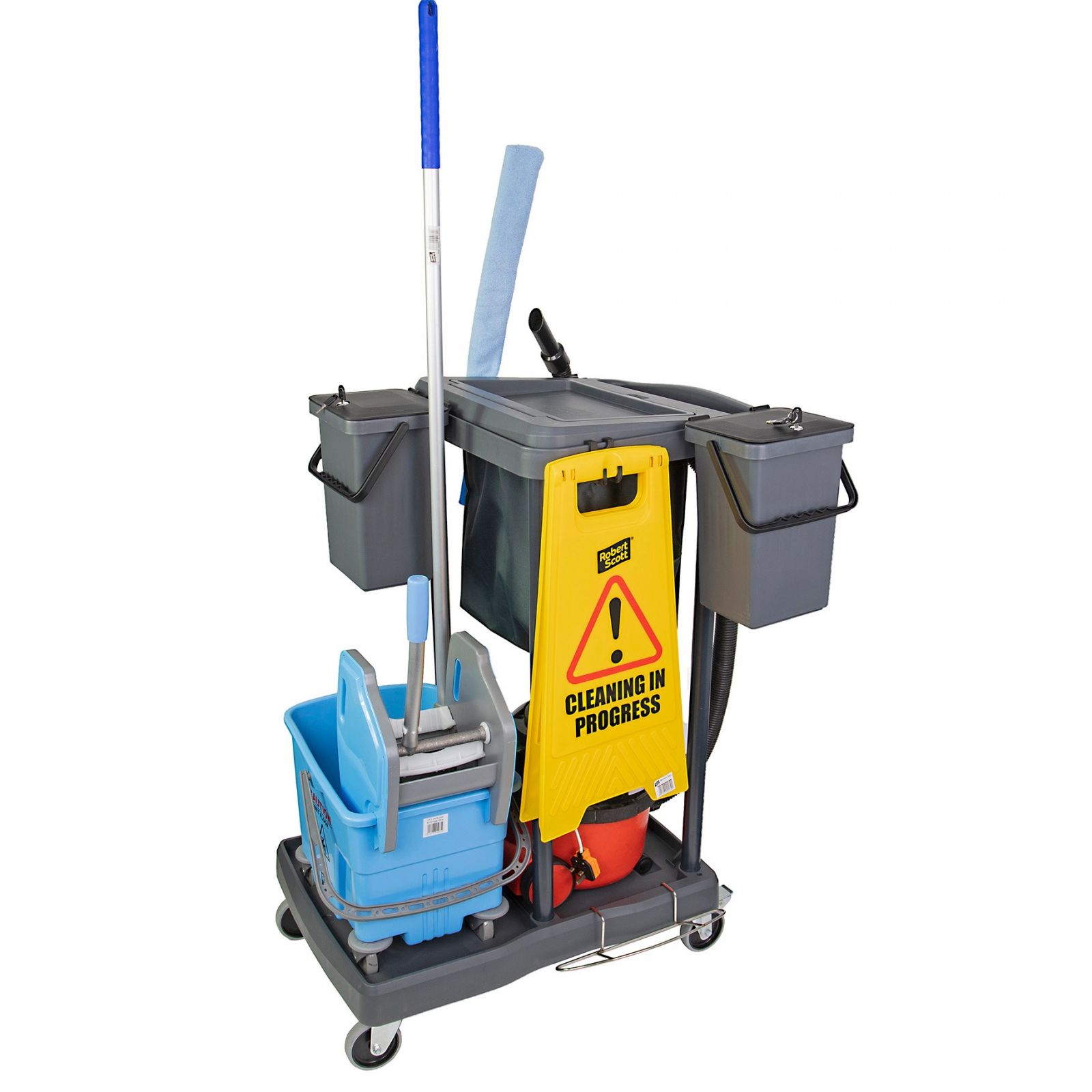 The Robert Scott Exel Multipurpose Trolley is a compact cleaning trolley that has been designed with flexibility in mind and packed with useful features to accommodate a wide range of cleaning products.