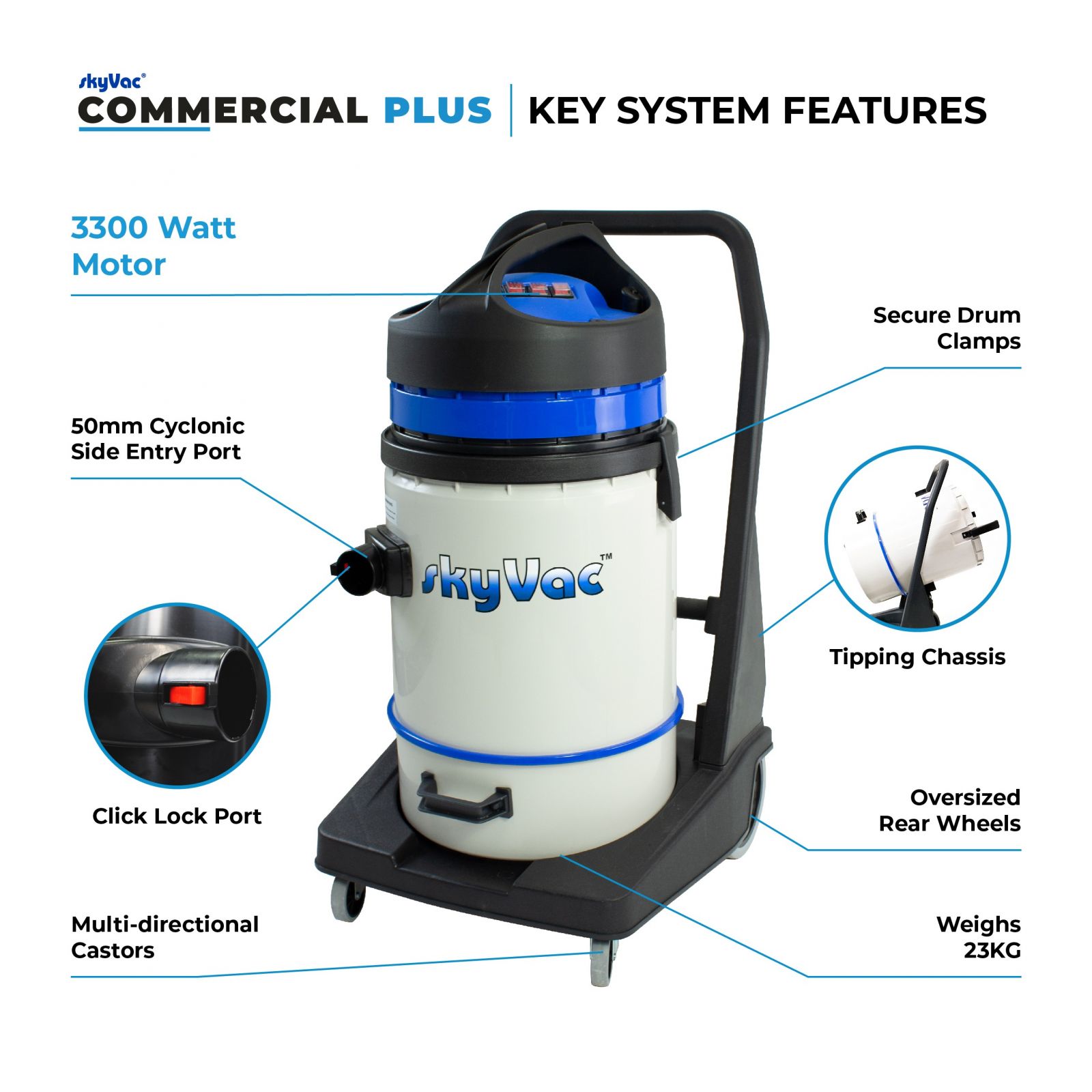 Now featuring improved motors, the skyVac Commercial Plus is exceptionally more powerful than ever before.