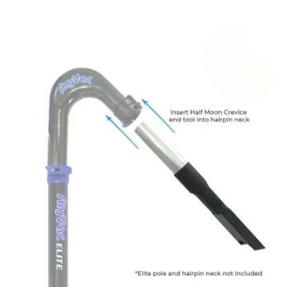 The SkyVac Elite Half Moon Crevice End Tool has been designed to fit into narrow gaps, and thanks to its scalloped end it has a larger vacuuming surface area, making it a breeze to lift debris in even