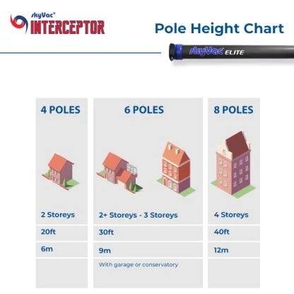 This vacuum is supplied with Skyvac ultra-lightweight Elite Poles. Available in 3 different height packages.