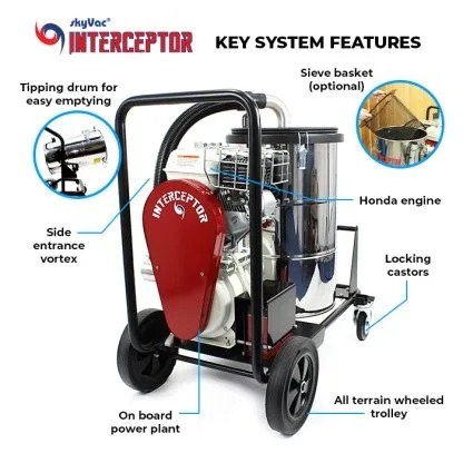 The Skyvac Interceptor Boasting 8000 LPM Airflow and a 90l drum, the Interceptors capacity is incredible, for fast results – first time.