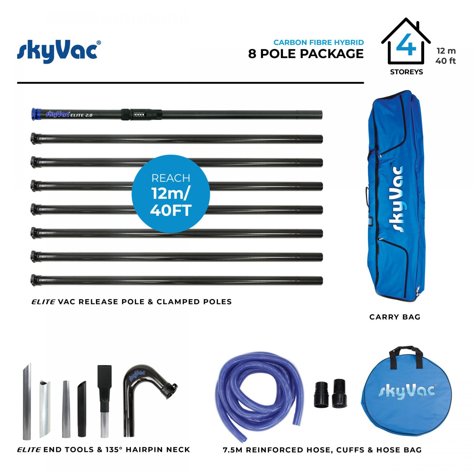 SkyVac Premium Clamped 50mm Pole Package is the upgrade that you and your vacuum have been waiting for.